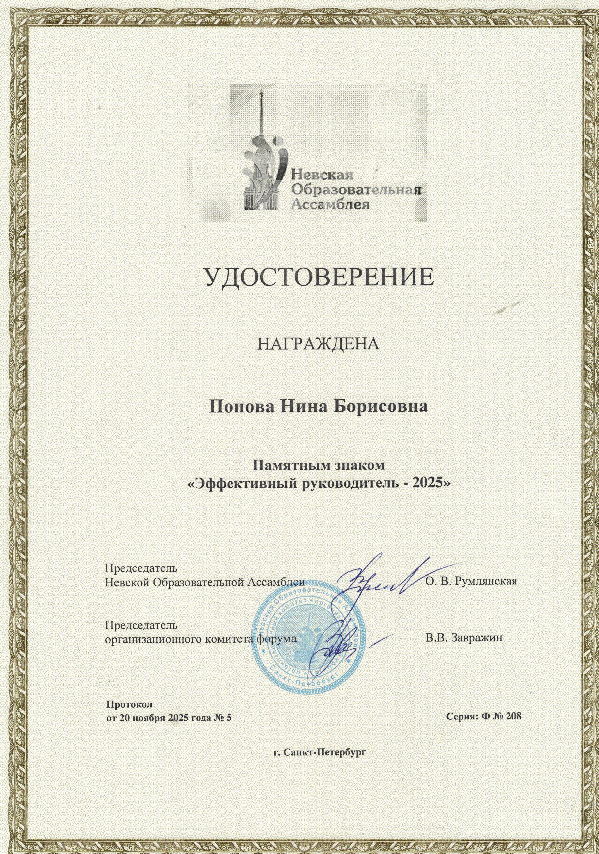 20-23 ноября 2025 г. коллектив нашего детского сада стал победителем Всероссийского конкурса "Образовательная организация XXI века. Лига лидеров - 2025". Заведующий Попова Нина Борисовна отмечена высокой наградой Памятным знаком "Эффективный руководитель-2025".